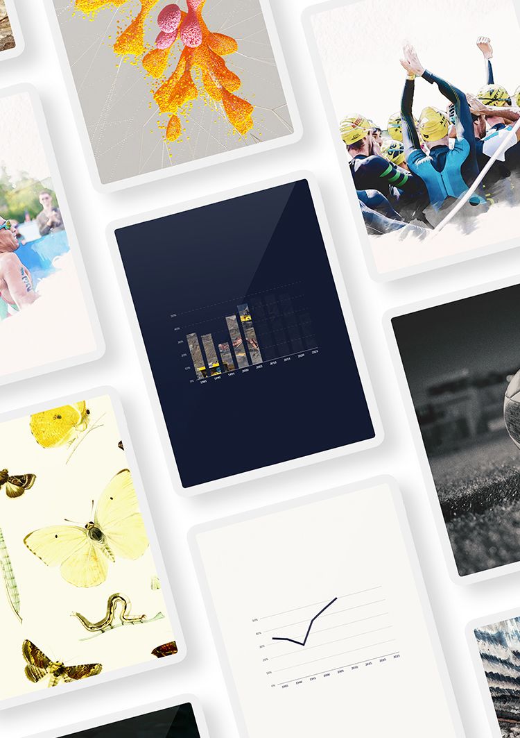 Data stories are hugely compelling — but they are also notoriously difficult to do well. This data storytelling template uses charts, numbers, and photography to tell a data-driven story, without letting the data overwhelm the narrative.