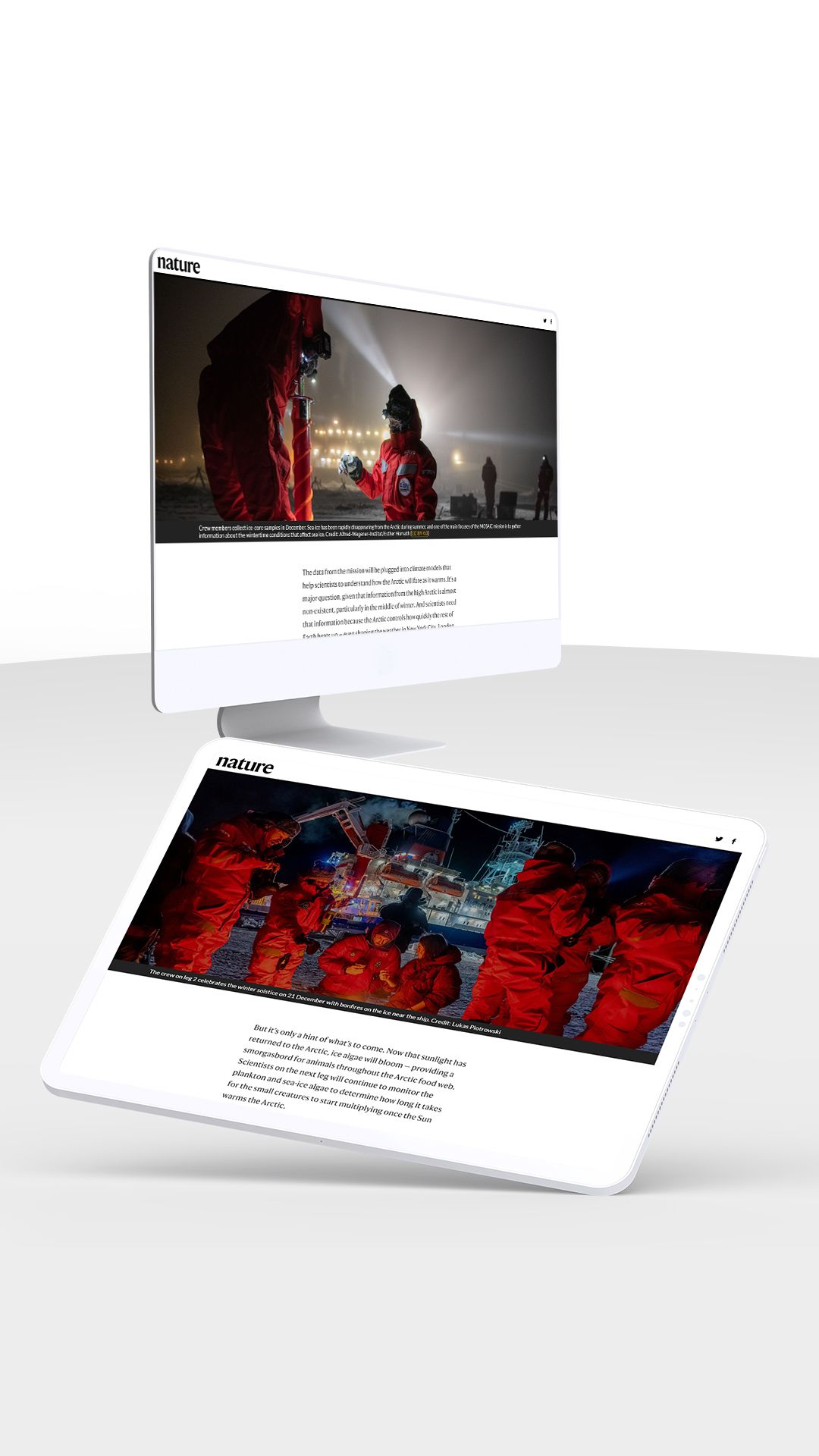 From Nature comes the gripping story of climate researchers who spent a winter trapped in ice — hauntingly illustrated with arctic scenes.