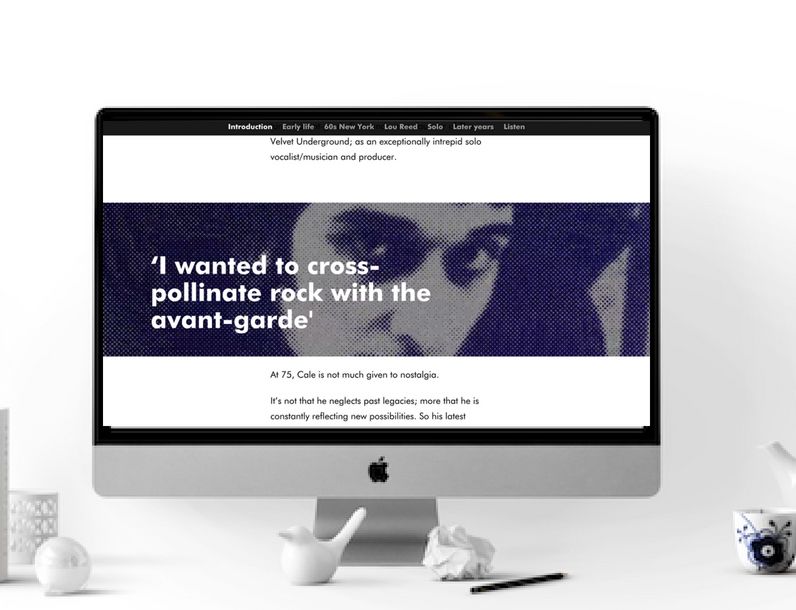The Barbican did just that with John Cale: A Futurespective, featuring pull quotes in half-height Text Over Media sections in a fixed position.