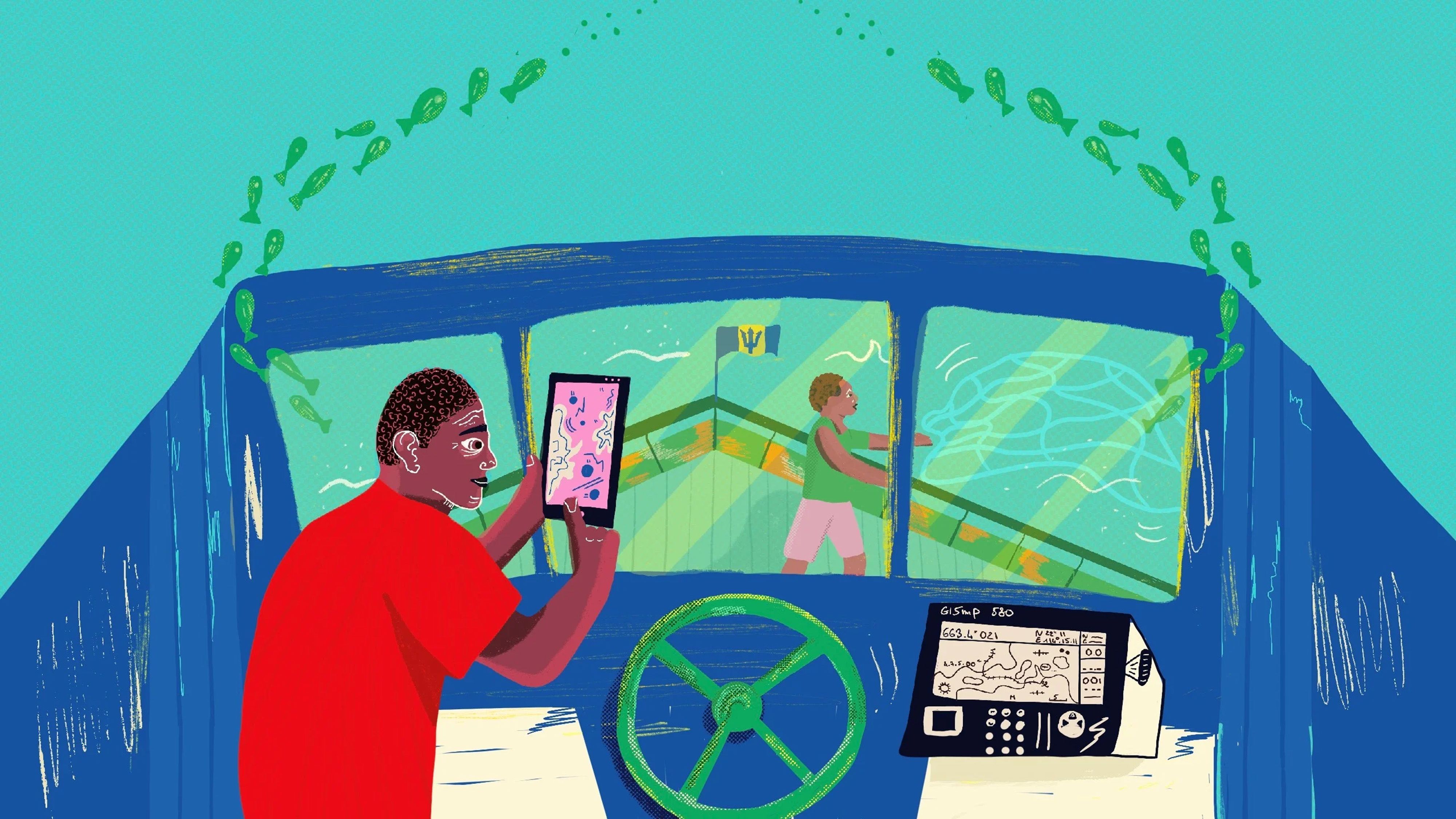 Ben Salem has also illustrated Shorthand stories for the International Finance Corporation about climate resilience in the Caribbean. She captures the voices of Caribbean academics and activists in her bright, patterned illustrations — a different, vibrant aesthetic from the normal profile picture that a reader might expect in this type of report.